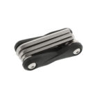 This Compact Tool includes six of the most commonly needed 2 mm, 3 mm, 4 mm, 5 mm, 6 mm, 8 mm metric hex key (aka allen key) sizes, plus phillips and flat screwdrivers forged from chrome-vanadium steel within a very compact plastic housing. In scuba applications, this tool is useful for installing and removing the yoke inserts found in convertible DIN valves, as well as fitting the IP adjustment opening found on some types of first stages.