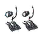 The Powerview dry travel set includes a high-quality 2-window mask with enhanced vision, EZ adjust buckle technology, ClearVu tempered glass lens and pure silicone skirt and strap.