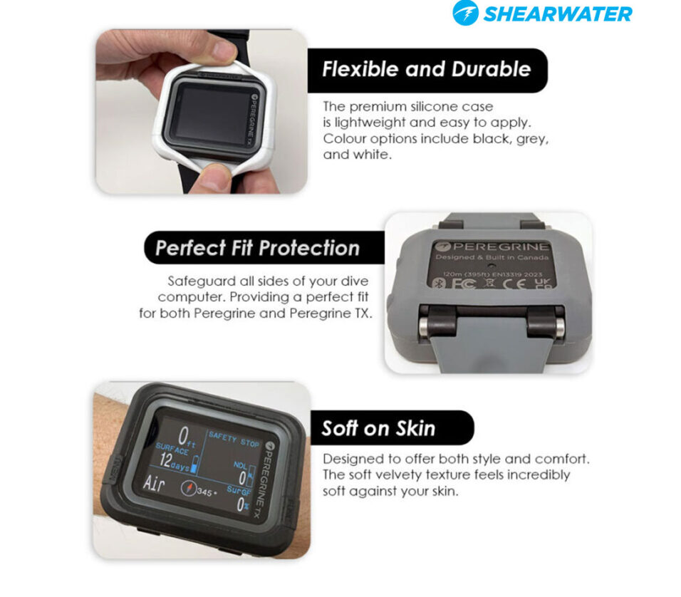 Protector Silicone Cover Housing Dive Computer Shearwater Peregrine Original Protect your Peregrine or Peregrine TX dive computer with this premium silicone protective case. Enhance the durability and longevity of your dive computer, as this case offers superior protection against scratches, bumps, and everyday wear and tear. Original parts from Shearwater