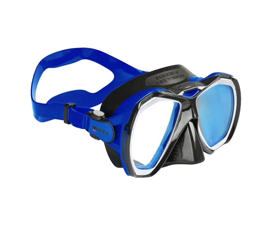 Discover the Mares FORCE-X LiquidSkin Dive Mask – Engineered for Superior Comfort and Performance! This premium dive mask is crafted for divers who demand exceptional comfort, durability, and panoramic vision beneath the waves. With the stainless steel integrated frame, the FORCE-X LiquidSkin offers unmatched durability and a sleek, flat profile that ensures a wide, unobstructed field of vision. The innovative 'Y'-shaped buckle system evenly distributes strap tension, delivering a secure and custom fit. Mares' signature bi-silicone LiquidSkin technology combines firm silicone for stability with soft silicone that adapts perfectly to your face, providing unparalleled comfort during extended dives. Easy lens changes are now possible thanks to quick-release metal clips, offering seamless customization with visual aids. The FORCE-X LiquidSkin not only performs at the highest level but also prioritizes sustainability with its exclusive, reusable EVA storage box—protecting your gear while reducing plastic waste.Key Features: