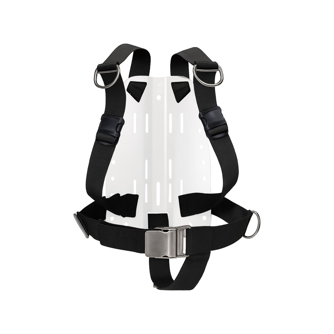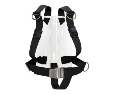 The BCD does not have a rigid backpack which means it can be rolled / packed down to a tiny size, saving significant space in your dive bag and luggage. A strap loop system allows the BCD to be quickly and easily adjusted to your body. The harness is fitted with two 40mm aluminium D-rings below the weight pockets and two 25mm aluminium D-rings on the shoulder straps.