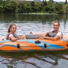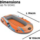 The Bestway Kondor Elite 2000 is a fun-filled inflatable raft for families looking to explore the water together! Perfect for one child and two adults (with an overall weight capacity of 120 kg) and featuring a highly visible orange color, it's easy to inflate so you spend less time setting up and more time on the water. The raft features an added layer of protection with its double air chamber construction and a comfortable, padded inflatable floor for added relaxation and stability. A handle attached to the front of the raft ensures convenient transportation around the lake or pool. Additionally, oarlocks built into the sides of the raft will help keep paddles (not included) in place, and a handle strap wrap with built-in grommets allows you to dock the raft, connect with friends, and easily re-enter the raft from the water. From paddling to fishing to simply floating along, this raft promises a summer to remember. Easy to use and easy to transport, the Kondor Elite 2000 raft is no problem for your next day on the water!Feature: