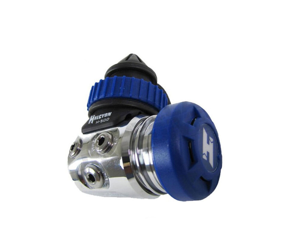 The H-50D is a high performance diaphragm design that is fully sealed and purpose built for harsh conditions ice or environmentally contaminated environments. Diaphragm first stages are historically popular with cold water divers and the H-50D was engineered for extreme conditions. Go dive extraordinary places with your H-50D and be confident that you have a rugged regulator that will meet all your demands. Halcyon H-50D First Stage Regulator Balanced, environmentally sealed diaphragm provides better performance in cold water than any other diaphragm regulator while supplying consistent performance at varying tank pressures and depths; you will enjoy smooth, easy breathing throughout your dive. The dry, balance chamber, diaphragm design prevents the entry of water into the first stage mechanism and enhances a trouble-free operation; this is true even in the coldest conditions. Two opposing high pressure ports allow you to choose to route your SPG and allows the use of accessories. Most Halcyon diver’s route their pressure gauge to the left but the Halcyon H-50D allows flexibility with any configuration you choose; these options provide freedom to support personalized and advanced hose routing configurations. Four low pressure ports allow you to customize your hose routing for comfort and convenience. The H-50D features four stationary low pressure ports with high flow options, ensuring the best air delivery with up to 15% more air than other LP ports. For maximum freedom, try the H-75P with its 360 degree swivel turret. 300 Bar DIN first stage is the most secure connection available; our DIN fittings are compatible with a wide range of yoke conversion kits. Nitrox 40% compatible| Category | : | Regulators |