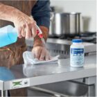 Prevent cross contamination to keep your food safe and your food establishment in business with these sani-tabs. They can be used in either a soaking method for dishes, glasses, utensils, and other small items, or in spray applications for sanitizing large surfaces like countertops, sinks, processing equipment, refrigerators, and other non-porous surfaces that frequently come in contact with food. Powerful FormulaWhen used as directed these tablets are highly effective at preventing the transmission of infectious diseases like HIV-1 (AIDS virus), E. Coli, and Staph, while remaining gentle on your employees' hands and safe for use on food contact surfaces. For SoakingWash articles with a good detergent in first sink compartment. Rinse with clean water in second sink compartment. In third sink compartment use 1 tablet per 1 gallon of warm water. Allow several minutes for tablets to dissolve. Immerse articles for at least one minute or for contact time specified by governing sanitary code. Allow articles to air dry on a rack or drainboard. For Spray ApplicationWash and rinse all articles and surfaces thoroughly. Apply the solution (1 tab per 1 gallon) using a hand trigger sprayer or wipe it on. Allow surface to remain wet for at least one minute followed by adequate draining and air-drying.| Category | : | Accessories Scuba Diving |