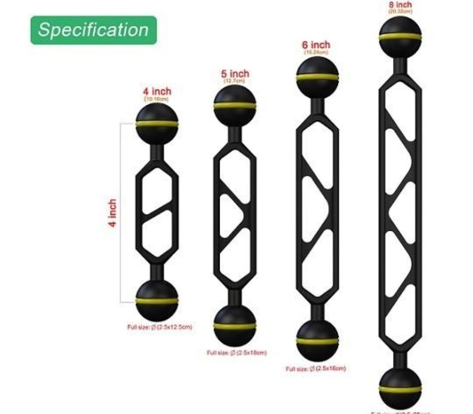AM-10 Flat Aluminium Arm Extend Camera Sea Frogs Ball To Ball 8″ (20cm)