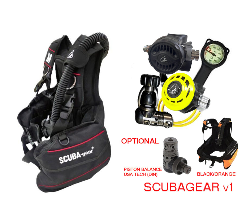 Scuba BCD Regulator Set Zeepro Scubagear Basic V1 + Extra Piston Balanced + Single Gauge 52mm