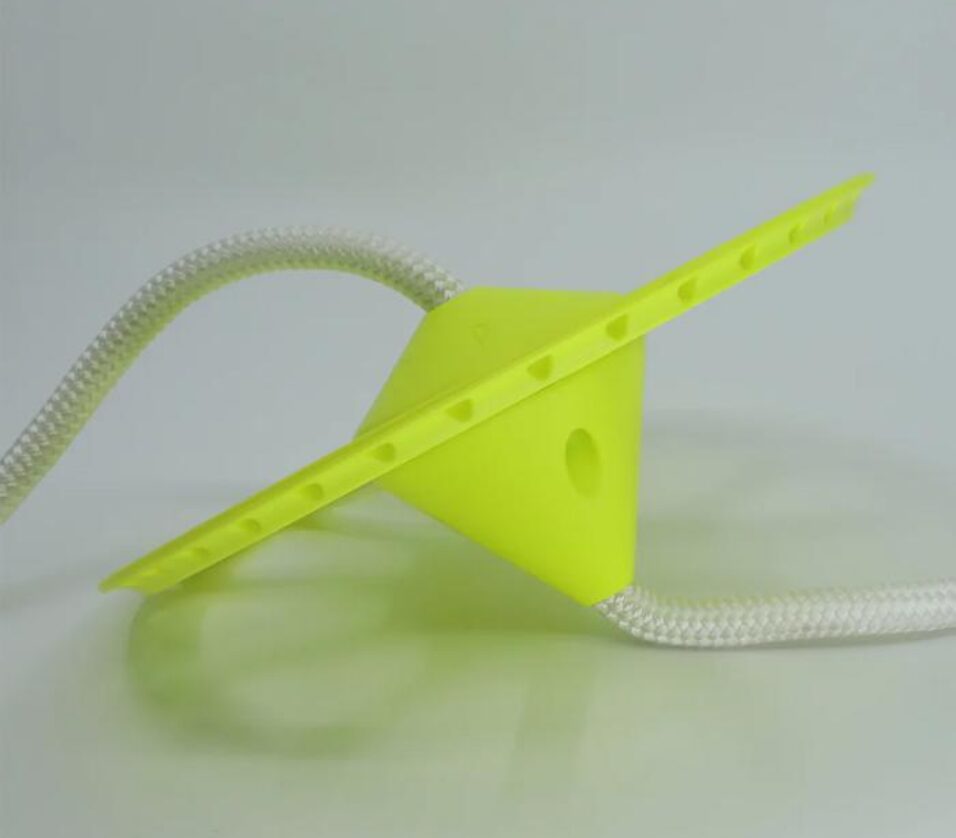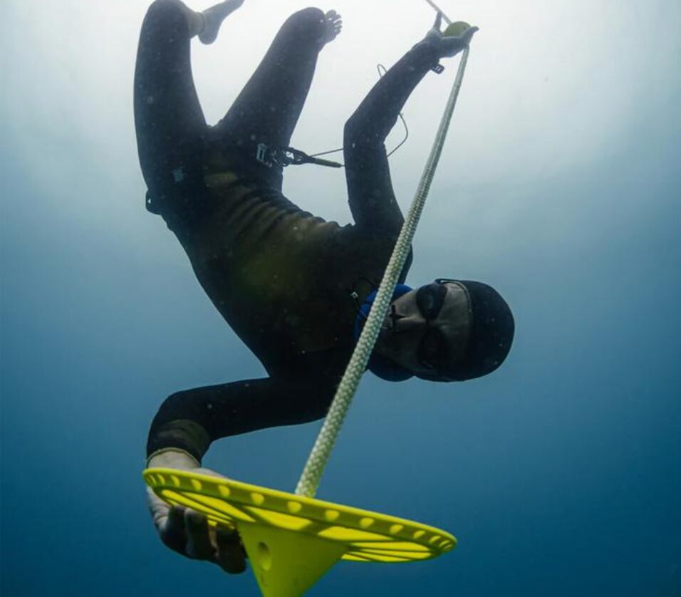Why is it better to train with a bottom plate? Get used to grabbing a tag during some of your training sessions. It will help you reduce the « tag stress » during your competitions by making this step « almost » automatic. It works perfectly with a 10 to 12mm rope. It is possible to use it with smaller ropes down to 8mm. Regarding the mounting process, the bottom plate is divided in 3 parts. A plate and a center structure (identical to our safety stopper). A simple knot is placed in its center, and 3 stainless steel screws (standard cross-head) make it easy to finish putting it in place. It is made out of ABS, a strong plastic used for example to make LEGOs: after all, we are just big kids playing in the water! The new OCTOPUS bottom plate: a simple and efficient design for an unbeatable quality! Designed and tested by Swiss record holder Pascal Berger (-131m VWT ).