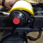 KETERANGAN Lengkap Full Set sebagai berikut : 1. Full Face Mask2. Backing 3. Gas Cylinder4. Medium pressure pipe assembly5. High Pressure Connector6. Positive Pressure Air Control Device7. Pressure Relief Valve Assembly DEFINISI SCBA Contained Breathing Apparatus adalah alat bantu pernafasan yang digunakan oleh petugas pemadam kebakaran saat menjinakkan kobaran api. Masker ini disebut self-contained karena tidak bergantung pada persediaan udara jarak jauh, misalnya dari selang panjang. FUNGSI SCBA Alat yang bersifat resisten terhadap api ini memberikan udara layak untuk bernafas dalam kondisi hidup-mati atau IDLH (Immediate Danger to Life and Health) melalui tabung udara bertekanan, yang dibawa sendiri oleh penjinak api. PRINSIP SCBA Masker Self Contained Breathing Apparatus bekerja menggunakan prinsip sirkuit terbuka. Prinsip sirkuit terbuka menandakan bahwa alat ini beroperasi dengan prinsip pernafasan pada umumnya: pengguna menghirup udara, menghembuskan udara, dan kemudian menyebabkan pengurangan/penipisan persediaan udara dalam tabung. Penggunaan SCBA dengan sirkuit terbuka terbilang aman karena sistemnya secara otomatis menjaga tekanan udara di dalam masker lebih tinggi daripada tekanan udara di luar demikian, seandainya terjadi kebocoran pada masker, masih ada udara bersih yang mengalir keluar dan mencegah asap masuk ke dalam yang dihasilkan SCBA bukanlah oksigen murni, melainkan udara yang sudah difiltrasi dan dikompresi.