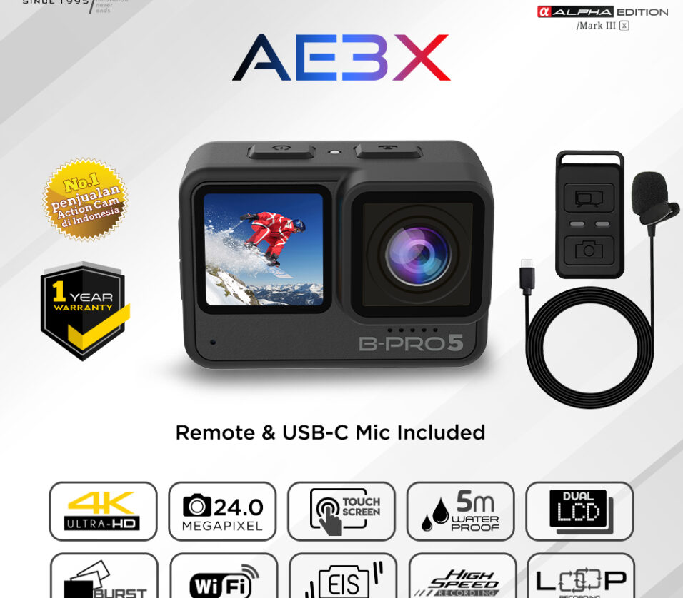 - FILE FORMAT: Video: MP4 H.264, Bitrate: ±30MBps, Photo: JPEG