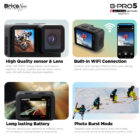 - MODES: Video recording, Photo recording, Slow motion mode, Photo burst mode, Photo timer, Timelapse mode, Loop recording, WiFi Live Stream, Playback