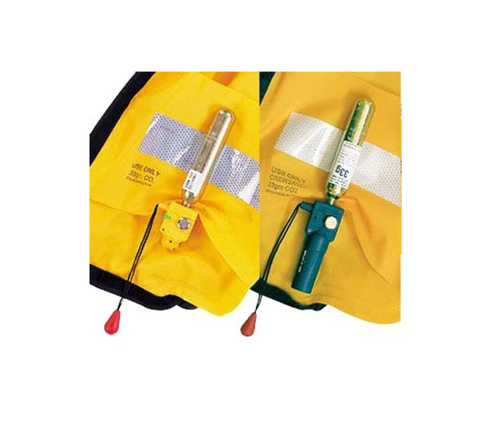 Single one-way cartridge with CO-2 gas fill of 33 g for life jackets with 275 N buoyancy.