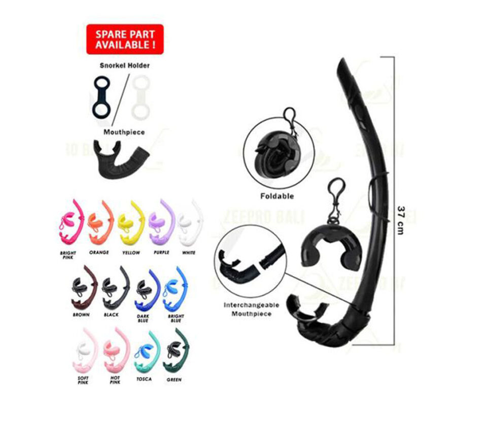 - Silicone mouthpiece is comfortable and flexible enough to fit just about any shaped mouth. Silicone snorkel keeper allows you to attach snorkel to your mask.