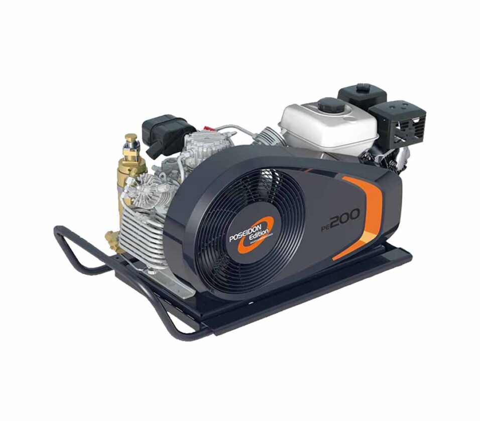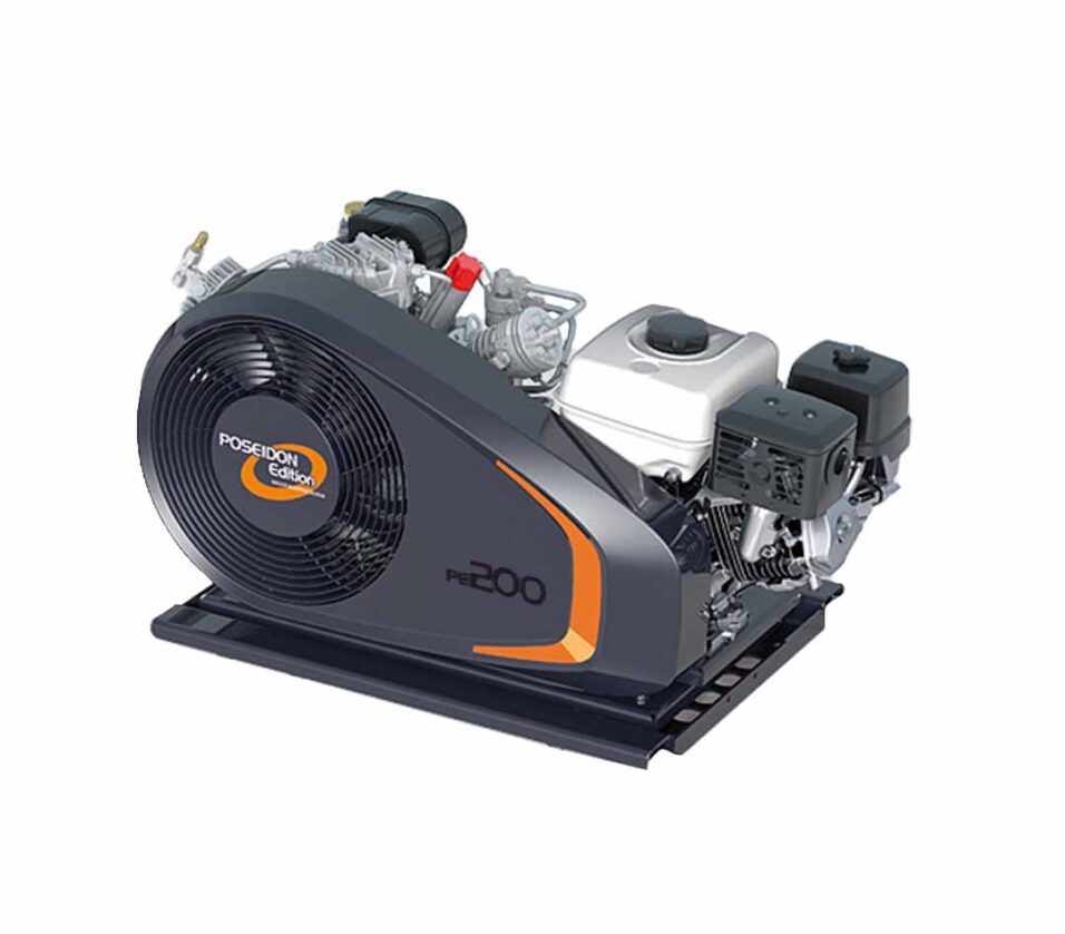 POSEIDON EDITION units combine BAUER KOMPRESSOREN core components of uncompromising quality, whose ability to perform is undeniable, with equipment that has been optimized for its intended use. Durability, high safety, and clean air quality that comply with international norms and requirements are all included in the package. The PE-TE/PE-TB breathing air compressor family strikes a very strong price/free air delivery balance. Their integrated oil pump can support up to 15 degrees of inclination, making this series of units ideal for usage on ships or in vehicles. The units are very easy to carry and will fit into the boot space of many cars due to their tiny dimensions. The mobile compressors of the POSEIDON EDITION are available as electrical (PE-TE) and gasoline (PE-TB) versions.