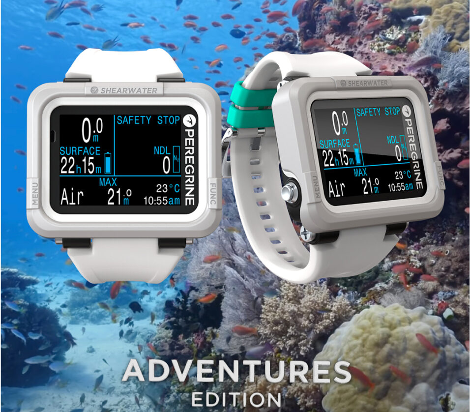 It is powered by the rechargeable Li-ion battery and holds the charge for up to 30 hours on medium brightness. You will enjoy the generous logbook capacity that will allow you to store up to 200 hours worth of dives. Cold water drysuit divers will appreciate its vibration alarms. For divers looking to customize, additional straps can be purchased in Ocean Blue and White. Like all other Shearwater computers, Peregrine comes beautifully wrapped in a ballistic nylon polymer case.