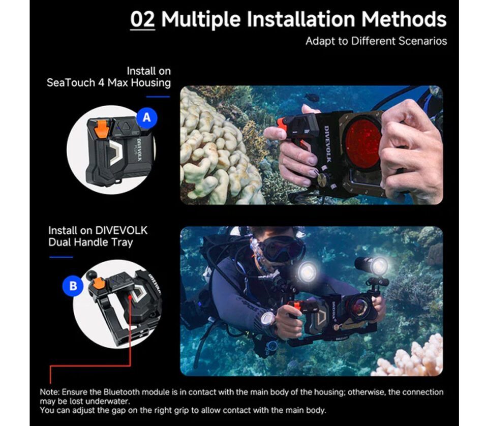 - 【Multiple Installation Methods】Adapt to Different Scenarios,it can be Installed on SeaTouch 4 Max Housing and DIVEVOLK Dual Handle Tray