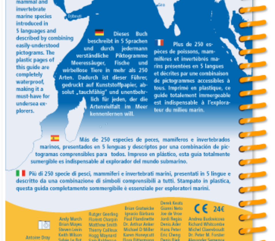 From the Red Sea to the Java Sea via the Arabian Sea and the Bay of Bengal, our guide describes 280 marine species. Entirely made of plastic material, it is perfectly water resistant and fits in the pocket of a diving vest as well as in a beach bag.