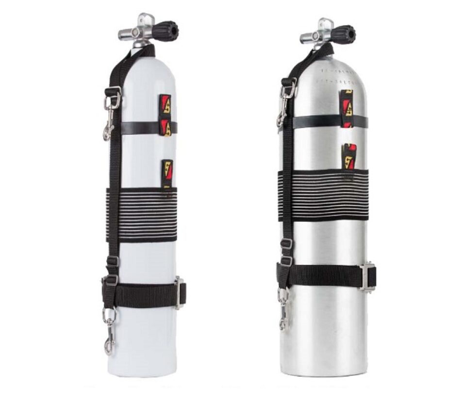 Quickly set up stage, deco, or sidemount bottles without tools using The Dive Rite Travel Stage/Sidemount Straps.