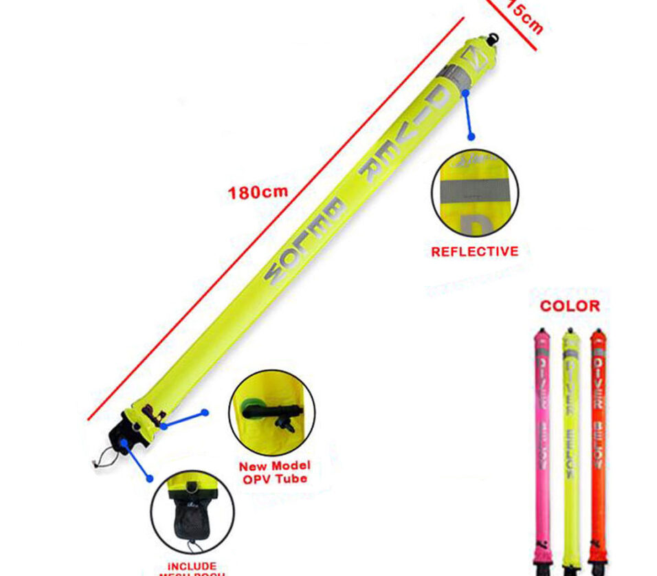 Sausage Surface Marker Buoy Low Profile SMB Zeepro Nylon 180cm x 15cm W/ OVP Tube 75D Sausage Surface Marker Buoy (SMB) Diver Below Safety Scuba Diving or can be also for Spearfishing Gear Equipment standard size 1,8m is a great safety device that all serious divers carry on every dive. The SMB is the smart way for a diver to mark their location when making safety stops or signaling the boat if they surface a distance away from the boat. It is also labeled with “DIVER BELOW” so you can send it up to mark your location.