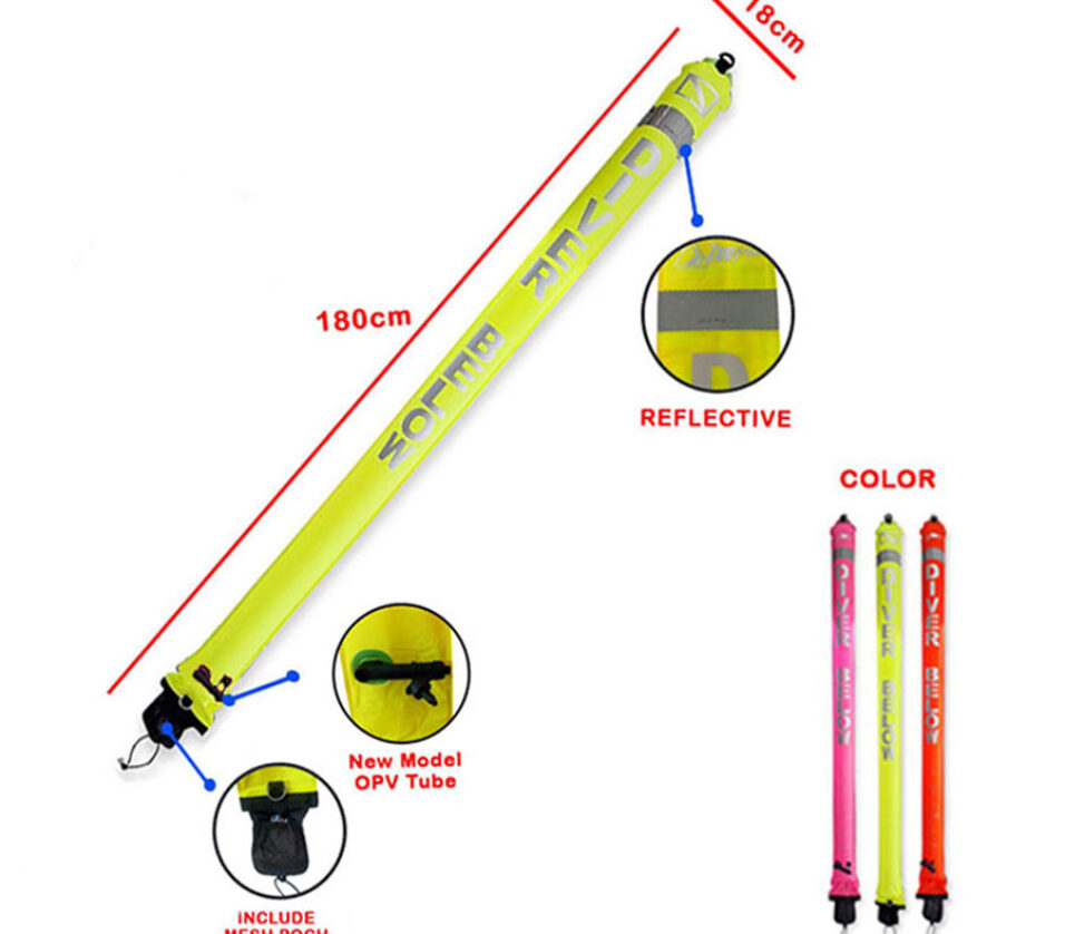 Sausage Surface Marker Buoy Low Profile SMB Zeepro Nylon 180cm x18cm W/ OVP Tube 75D Sausage Surface Marker Buoy (SMB) Diver Below Safety Scuba Diving or can be also for Spearfishing Gear Equipment standard size 1,8m is a great safety device that all serious divers carry on every dive. The SMB is the smart way for a diver to mark their location when making safety stops or signaling the boat if they surface a distance away from the boat. It is also labeled with “DIVER BELOW” so you can send it up to mark your location.