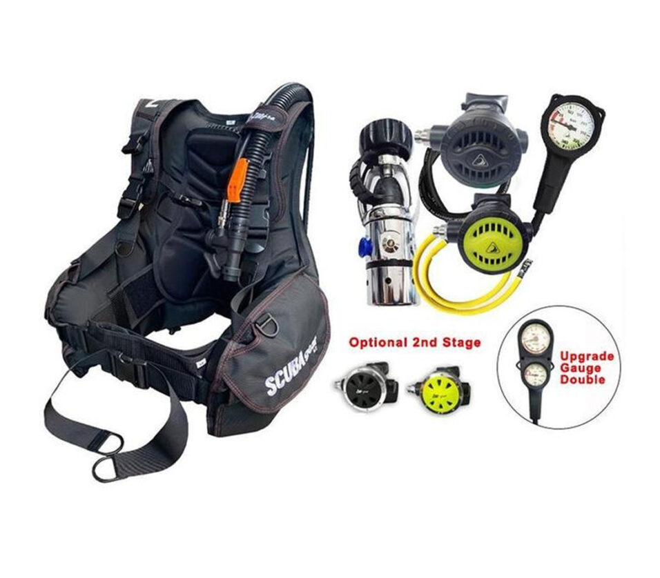 Paket Komplit Pengadaan Scuba Diving Mask BCD Scubagear V2 Regulator Fin Booties Zeepro Set Selam Scuba Gear - Double Gauge