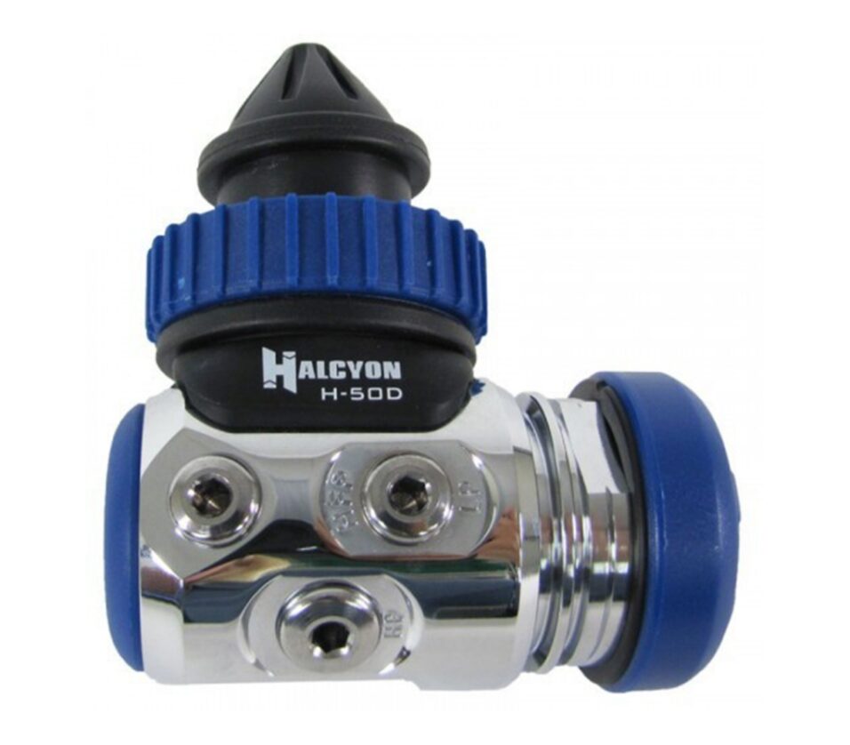 * 1ST STAGE HALCYON H-50D Halcyon H-50D First Stage Regulator (2019) Halcyon H50D First Stage - High performance balanced diaphragm, environmentally sealed for cold water. H-50D First Stage First Stage features a balanced, environmentally sealed diaphragm that provides premium performance and rock solid protection in the absolute worst environmental conditions.- 2 opposing HP (high pressure) ports