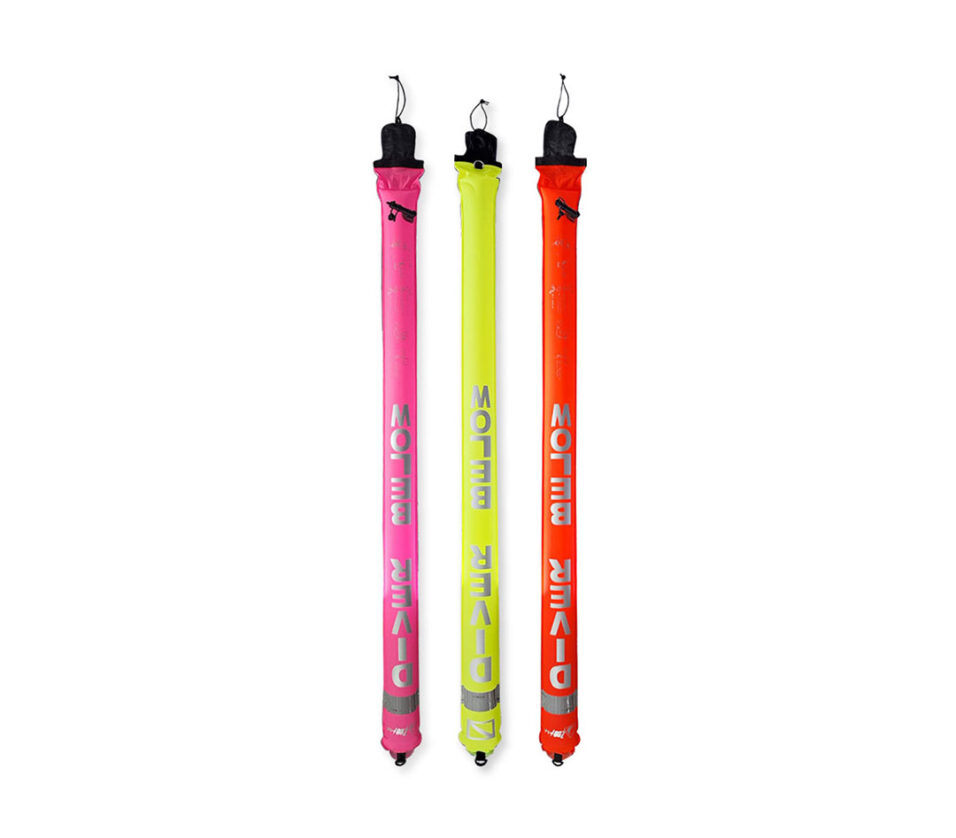 Sausage Surface Marker Buoy (SMB) Diver Below Safety Scuba Diving or can be also for Spearfishing Gear Equipment standard size 1,8m is a great safety device that all serious divers carry on every dive. The SMB is the smart way for a diver to mark their location when making safety stops or signaling the boat if they surface a distance away from the boat. It is also labeled with “DIVER BELOW” so you can send it up to mark your location.
