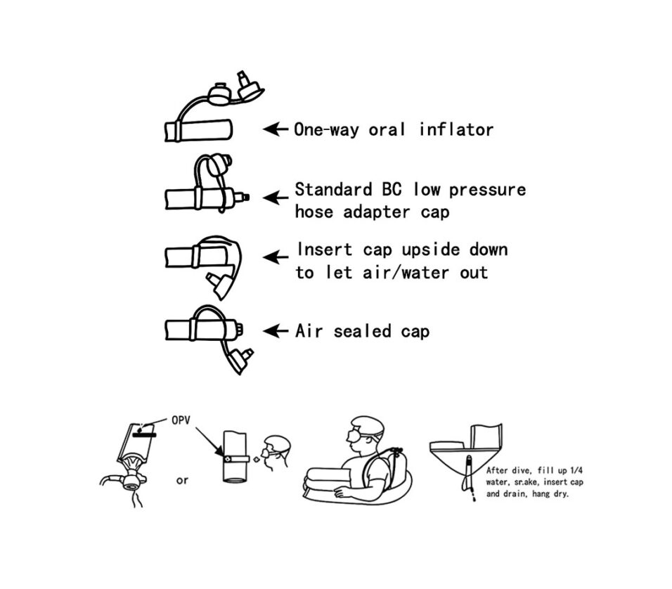 - Dump Valve , Reflector Tape, Clip On the top and bottom.