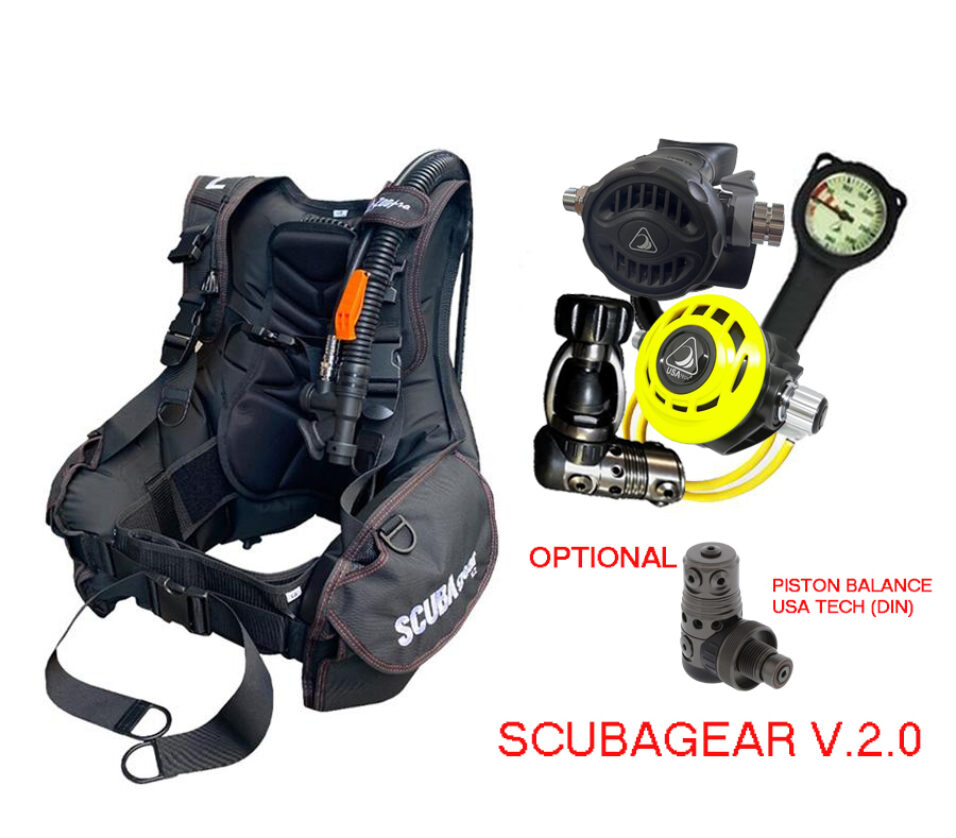 Scuba BCD Regulator Set Zeepro Scubagear Basic V2 + Piston Balanced XTEC XTX Adj + Single Gauge 52mm