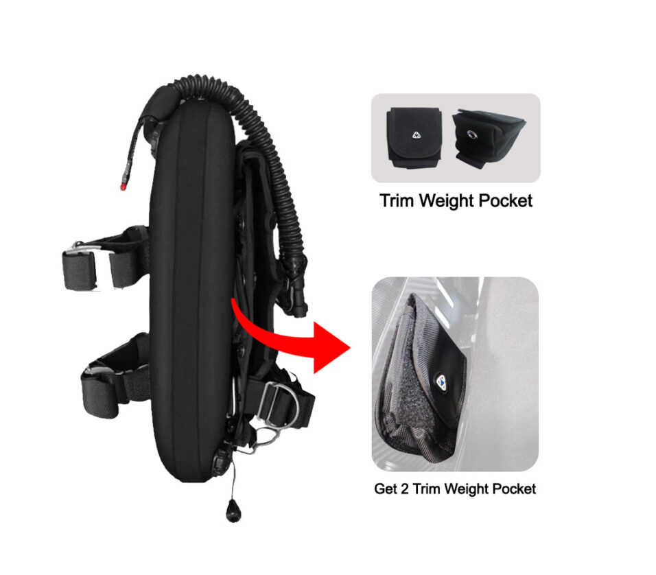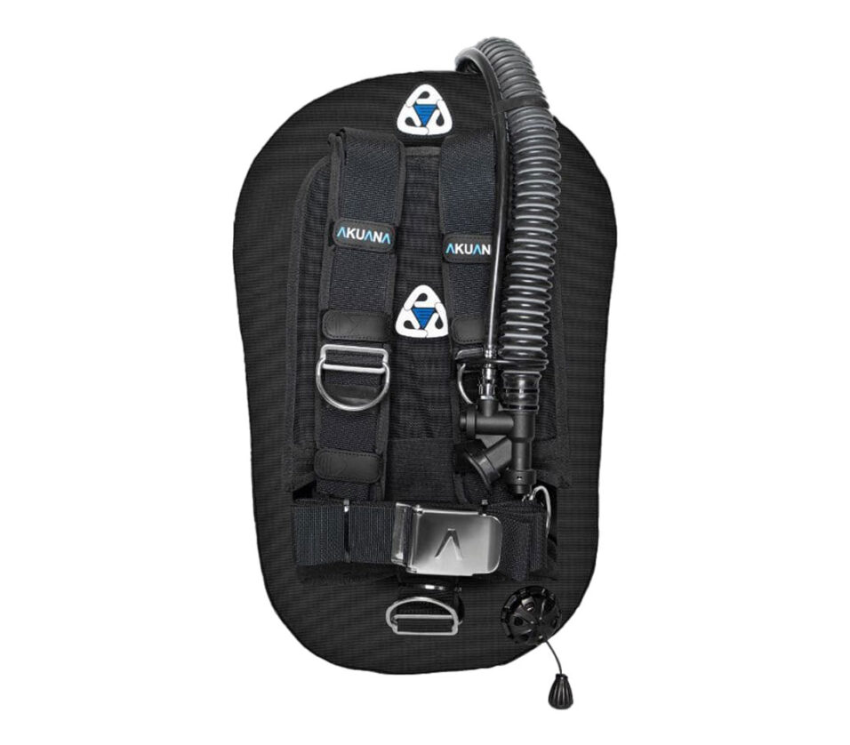 This version is a complete backmount set which includes a single tank donut, stainless steel D-rings, a standard harness, two tank straps with silver buckles. Equipped with soft shoulder and back pads, divers can wear this version without any suit in tropical waters. Carefully tailored shapes support reduced drag and greater in-water efficiency. The harness is a one-size-fits-all system for a customized fit.
