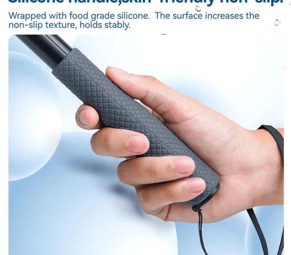 - Pegangan Anti Slip Bagian handle atau pegangan tongsis monopod dilapisi dengan silikon, sehingga Anda tetap bisa menggenggamnya dengan kuat meski tongsis atau tangan Anda basah. Membuat Anda tak perlu khawatir tongsis akan terjatuh.