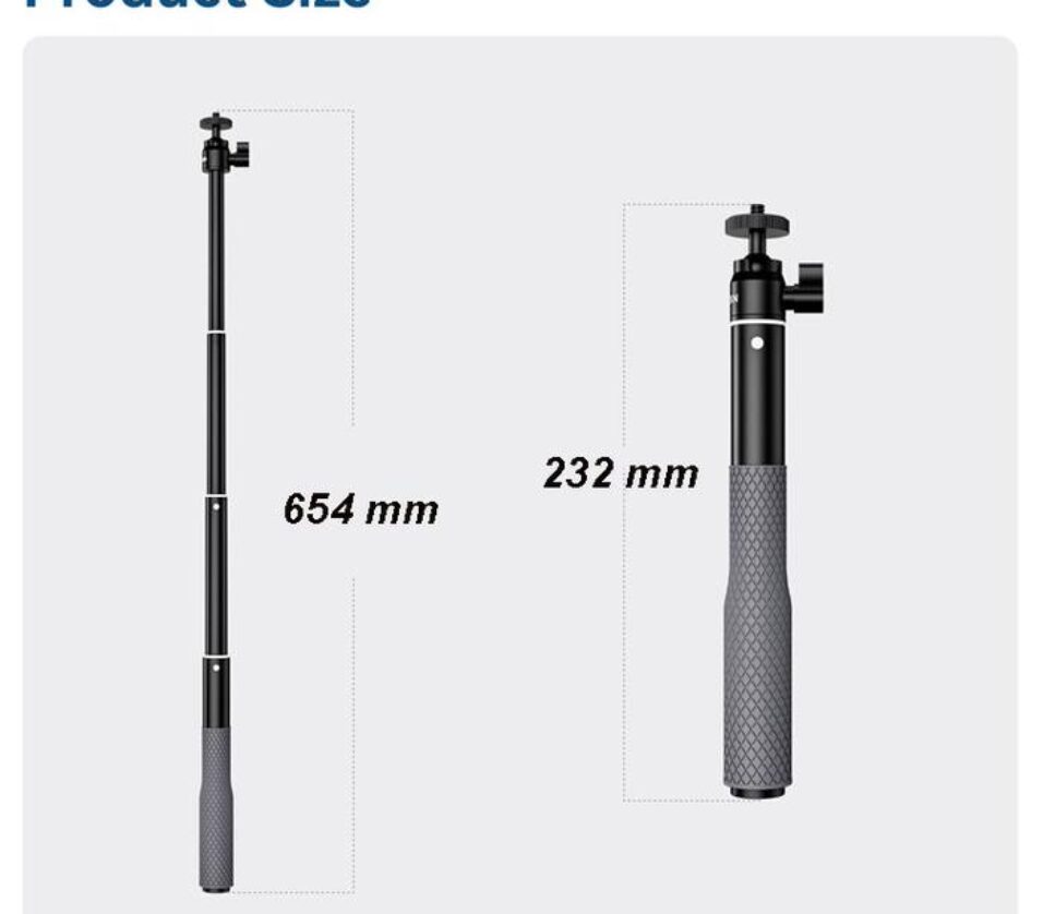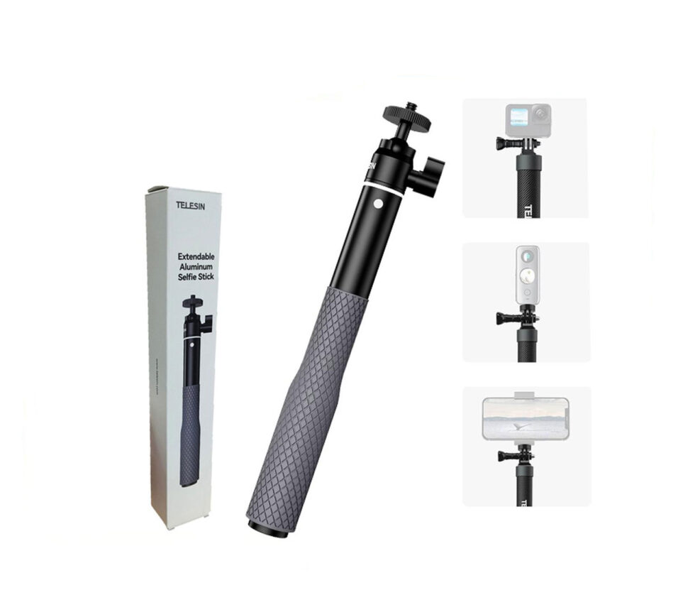- Ambil Gambar dengan Sudut Pandang Luas Abadikan momen saat berpetualang dengan menggunakan tongsis monopod dari TELESIN. Memiliki tongkat yang bisa Anda atur panjangnya hingga 654 mm. Tak ketinggalan dengan fitur ball head yang mampu berputar 360 derajat sehingga Anda bisa mengabadikan gambar atau video dengan sudut pandang yang lebih luas.