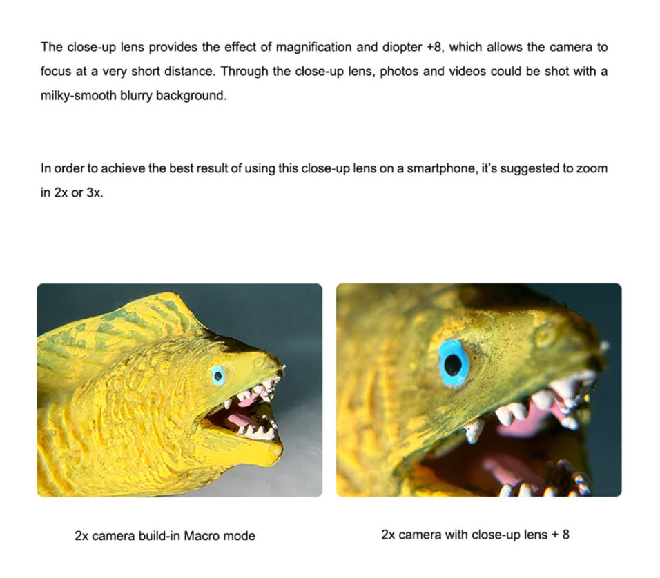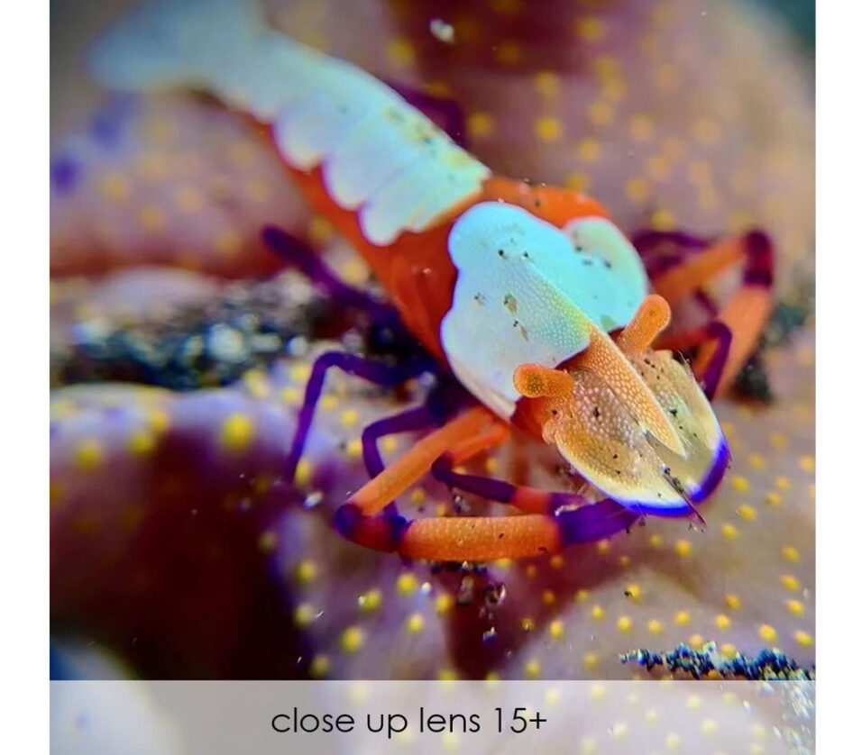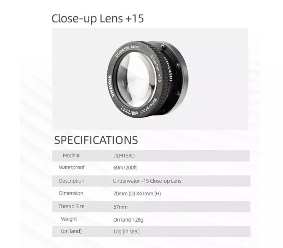 - An easy-to-use +8 macro lens that makes capturing the delicate beauty of tiny marine creatures accessible and fun for beginners.