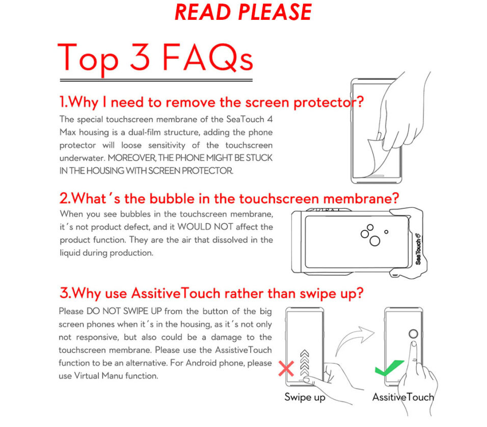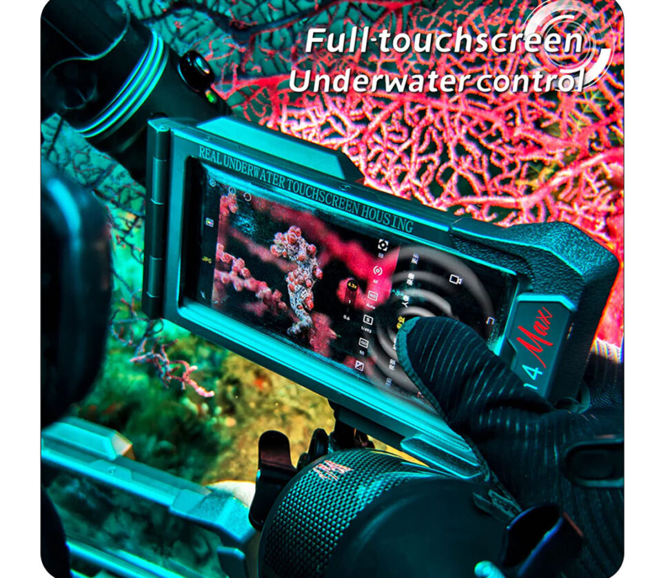 The Seatouch 4 Max Platinum Edition features a reinforced metal body, integrated connection base and M67 Lens Adapter Ring. It now supports larger handphone models up to 180mm x 82.5mm x 11.2mm (Length x Width x Depth), with a maximum phone lens thickness of 17mm. This expands the compatibility beyond the regular Seatouch versions- Real underwater touch screen system