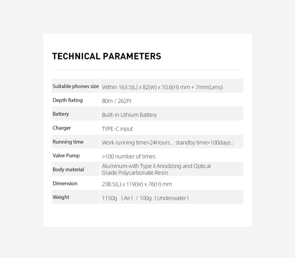 - Premium Build Quality: Crafted from high-strength aluminum alloy and optical-grade polycarbonate for durability in rugged underwater conditions.